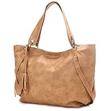 PETRA Beige Weekend Gateway Oversized Soft Leatherette Shopper Tote Hobo Shoulder Bag Satchel Handbag (Apparel)