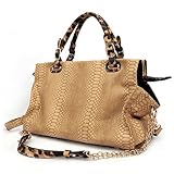 WINDA Oversize Beige Faux Crocodile / Leopard Animal Print Accents Double Top Handle Top Closure Shopper Tote Hobo Shoulder Bag Handbag Purse